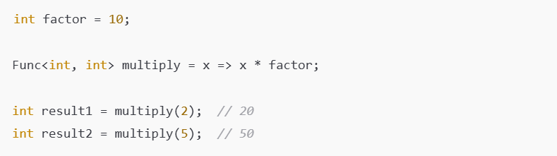 factor はラムダ式の外にある変数ですが、ラムダ式の中でも使用できます。