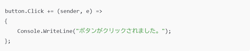 イベントハンドラーも、ラムダ式で簡潔に書けます。