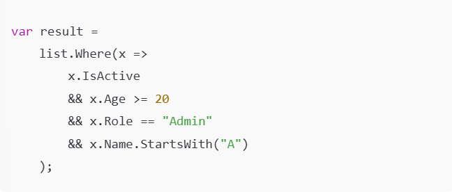 ラムダ式をネストしすぎると、処理の追跡が難しくなります。
