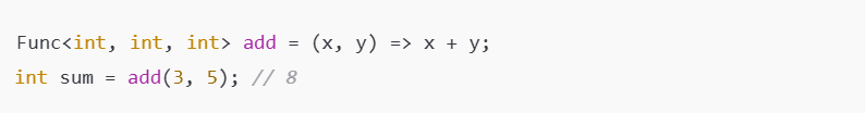 Func<>/Action<>と組み合わせて使うのが基本。- LINQ・イベント・Minimal API など、.NET 8 でも多くの場面で必須。
