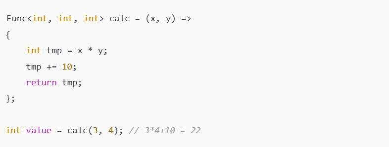 return が必要になる点に注意してください(式ラムダでは return は不要)。